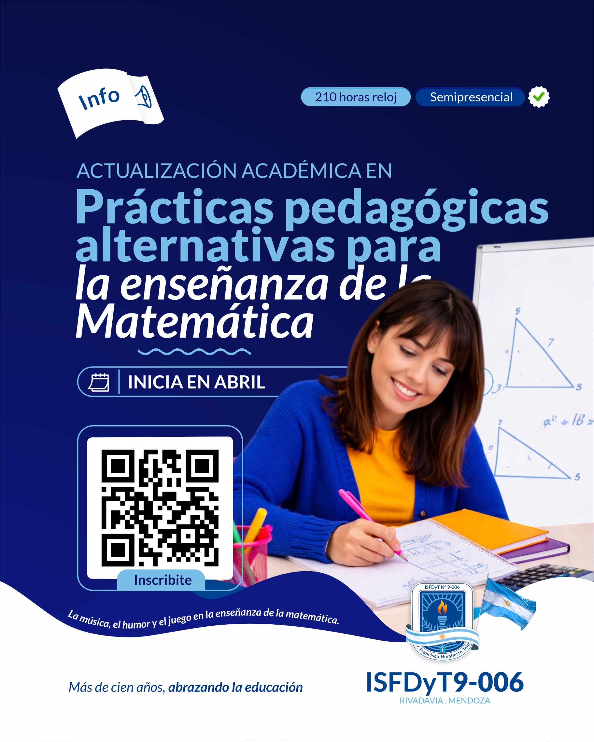 El ISFDyT 9-006 invita a docentes y estudiantes avanzados de formación docente a participar de la Actualización Académica en Prácticas pedagógicas alternativas para la enseñanza de la Matemática, una propuesta formativa que busca renovar la enseñanza a través de estrategias creativas, motivadoras y significativas. Esta formación pone el foco en el diseño de experiencias de … [+]