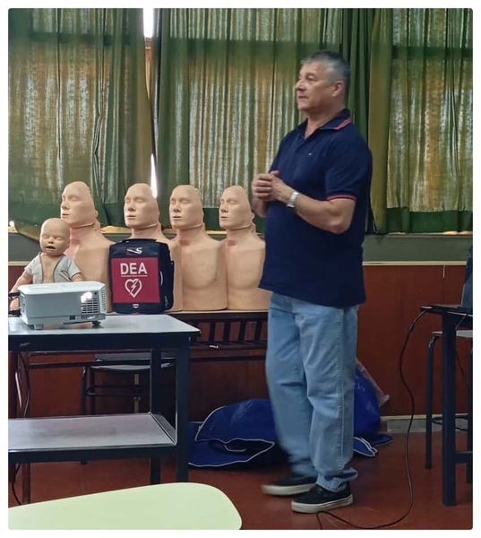 Taller de RCP, DEA y Maniobra de Heimlich, coordinado por Marcelo Cárdenas.